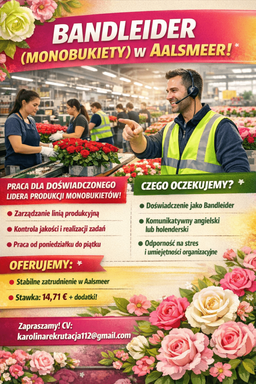 Bandleider (Monobukiety) w Aalsmeer Dla naszego klienta w Aalsmeer, poszukujemy osoby z doswiadczeniem na stanowisko Bandleidera.