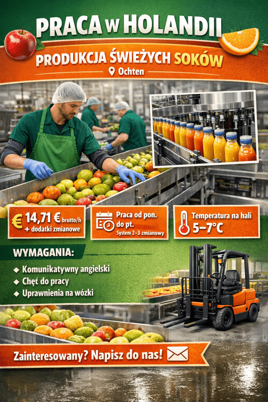 🍎 PRACA W HOLANDII – PRODUKCJA ŚWIEŻYCH SOKÓW 🍊