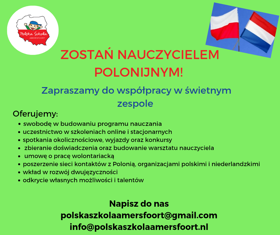 Udostępnij przez Facebook Udostępnij przez WhatsApp Udostępnij przez Messenger Kopiuj link Nauczyciel szkoły polonijnej , wolontariat 2 razy w miesiącu ( sobota) Szkoły, przedszkola Amersfoort Polska Szkoła Amersfoort AmersfoortOcean 6, 3825 WC 0652011563 psaorganizacja@gmail.com Polskaszkolaamersfoort.nl